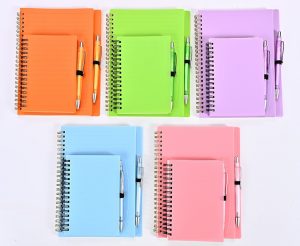 Personalized Plastic PP hard Cover Spiral Notebook Colorful A5 Size PP Notebook with Pen set with Custom Logo